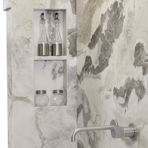 Il protagonista assoluto è il marmo, materia millenaria lavorata dalle mani esperte dei maestri di Senamarmi, che infondono in ogni blocco una solidità senza tempo e un’estetica unica, tra superfici generose e forme accoglienti, tra pietra naturale e tecnologia.
